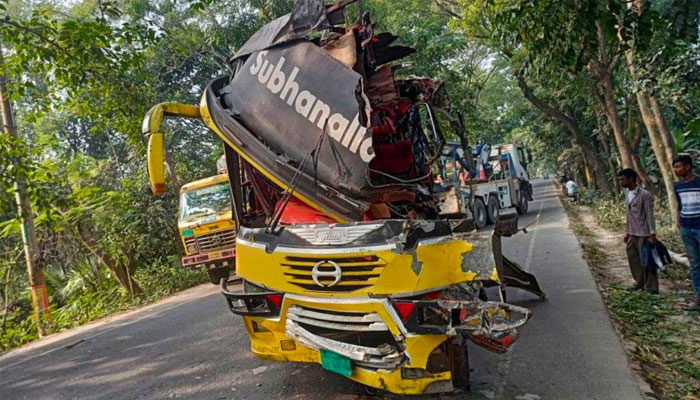 সোহাগ পরিবহণের একটি বাসের চাকা ফেটে সড়কের পাশের গাছের সঙ্গে....