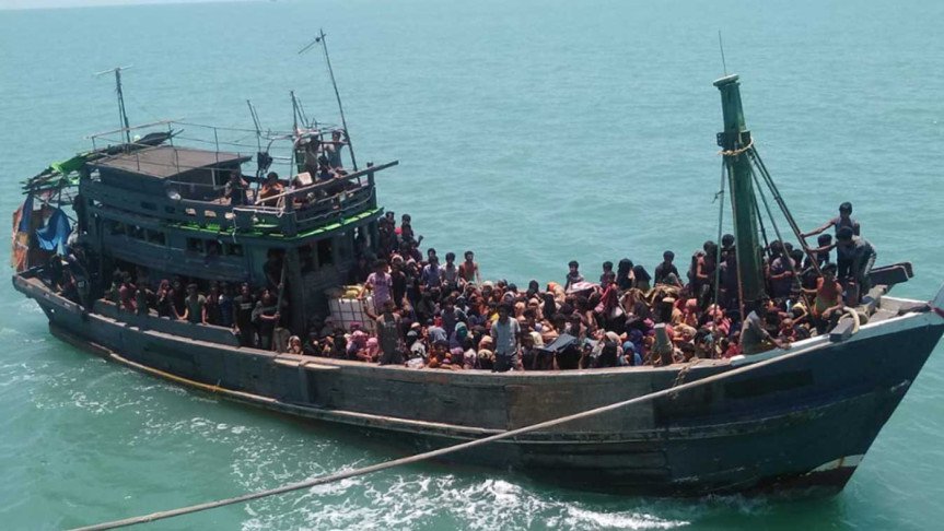 কয়েক সপ্তাহ সাগরে ভেসে থাকার পর রোহিঙ্গাদের বহনকারী একটি নৌকা....