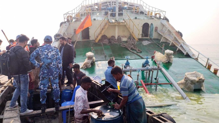 ঘন কুয়াশার কারণে ভোলার মেঘনায় কার্গো জাহাজের সাথে ধাক্কায় তলা....